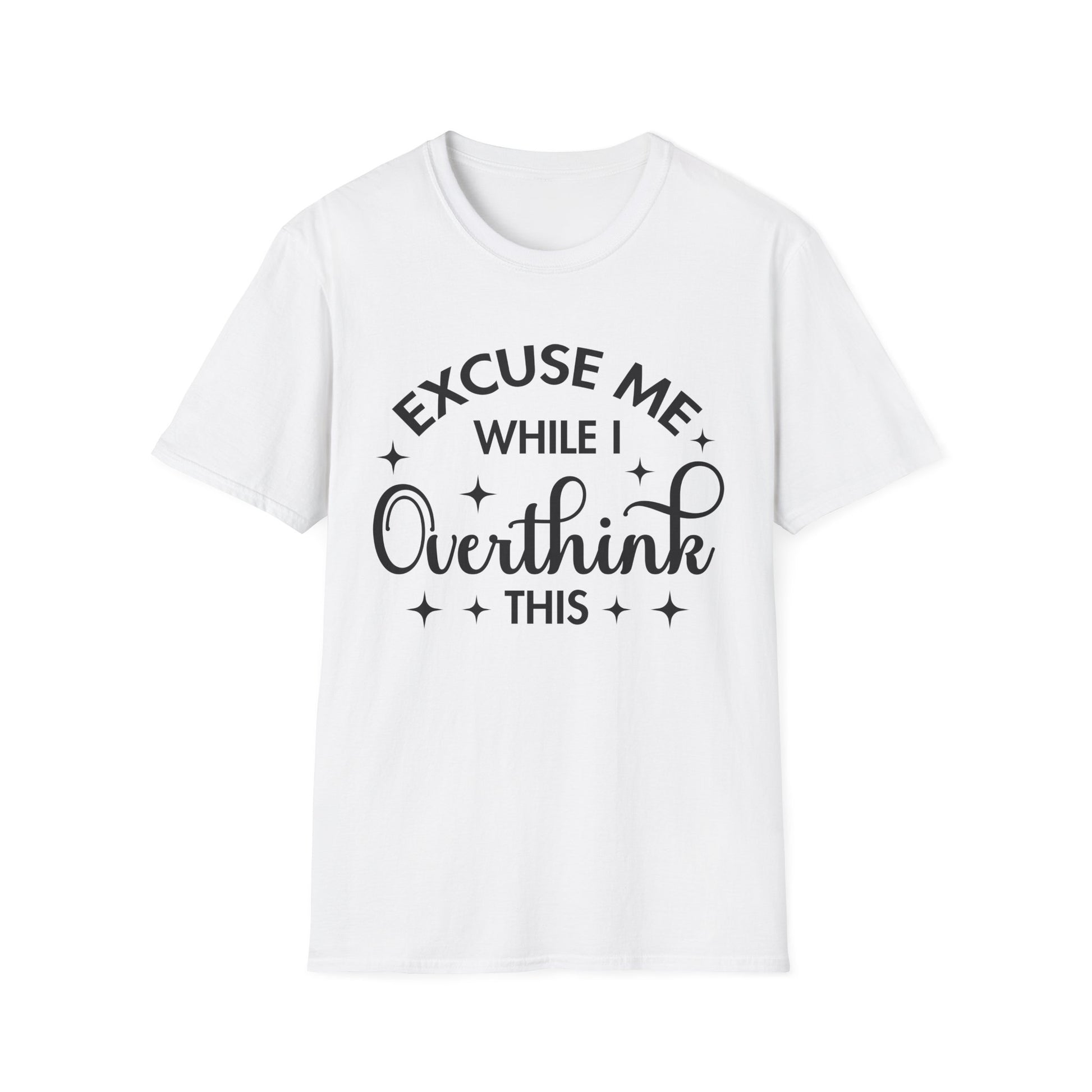 Embrace your inner thinker with this stylish unisex t-shirt. Made from 100% ring-spun cotton, it offers a lightweight and comfortable fit perfect for year-round wear. The soft, durable fabric feels great against your skin, while the classic crew neckline ensures versatility for any occasion—be it casual outings or social gatherings. Ideal for anyone who loves self-reflection or has an active mind, this shirt is a great conversation starter and a wonderful gift for friends and family. It's especially fitting for birthdays, holidays, or just a thoughtful surprise to show you care. The humorous and relatable phrase 'Excuse Me While I Overthink This' resonates with those who appreciate a touch of wit and personality in their wardrobe.